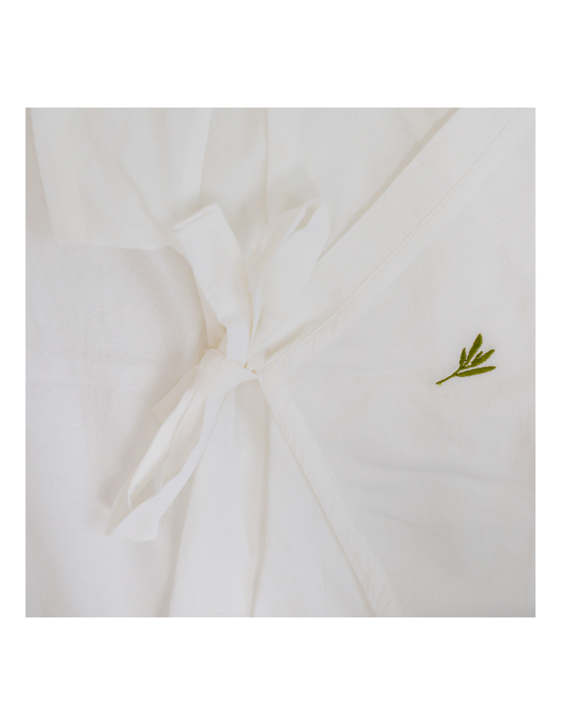 Kimono-ul-salopetă pentru bebeluși și copii, unisex, este realizat din bumbac 100%. Materialul este moale și fin, alb, delicat ca o adiere.